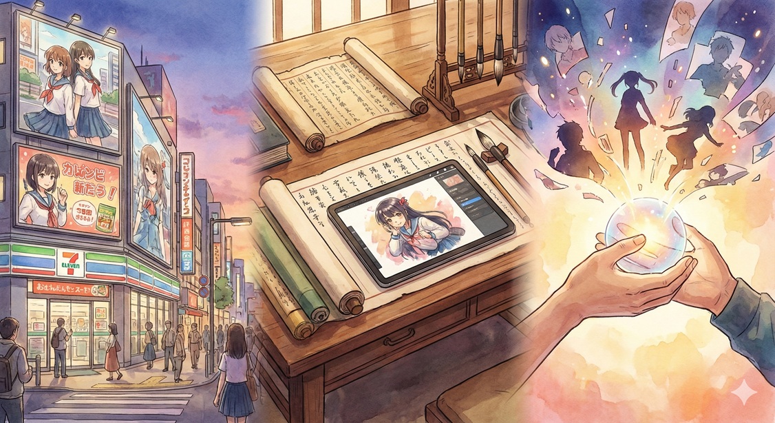 街を歩けば、アニメのキャラクターが交通安全を呼びかけ、コンビニの棚で新商品を宣伝している姿に出くわす。かつては画面の中だけの存在だった彼らが、今や現実の風景に溶け込んでいる。公式による商業的なコラボレーション、いわゆる「二次利用」の広がりは、作品が単なる物語を超え、社会の共有財産になりつつあることを示しているようだ。