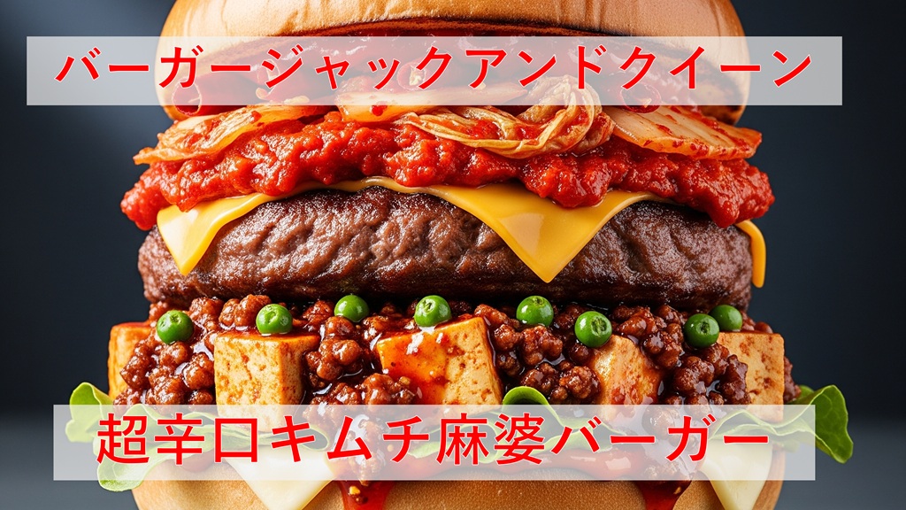 ハンバーガーチェーンのバーガージャックアンドクイーンは本日、既存の常識を覆す衝撃的な新作を発表しました。その名も「超辛口キムチ麻婆バーガー」。韓国の激辛キムチと四川料理の超辛口麻婆豆腐を同時に使用するという、前代未聞の組み合わせで、辛いもの好きの挑戦者を募ります。