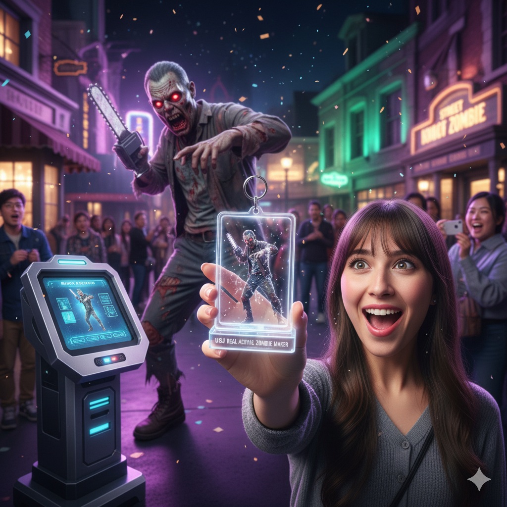 この「リアル・アクリル・ゾンビ・メイカー」は、今年のハロウィーン期間中からサービスが開始される予定です。USJは、この技術をさらに進化させ、将来的にはお気に入りのキャラクターをその場でキーホルダーにするサービスや、ホラー・アトラクションで絶叫しているゲスト自身をフィギュア化するサービスも検討しているとのこと。