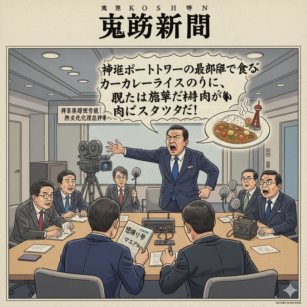知事の代表的な「怒鳴り節」として、先に報じられた「兵庫ポートタワーの最上階で食べるカレーライスのように、見た目は豪華だが中身はスカスカだ!」という秘書への一喝が挙げられる。この比喩は、華やかなイメージと実態の乖離を、県を象徴するランドマークと庶民的な料理を組み合わせるという、「地域密着型レトリック」の金字塔とされている。