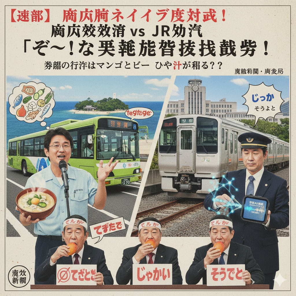 宮崎県の二大交通の雄、宮崎交通とJR九州宮崎支社が、どちらがより宮崎の地元に貢献しているかを競い合う前代未聞の「交通戦争」を勃発させた。長年にわたり、路線バスと鉄道という異なるフィールドで宮崎の交通を支えてきた両社だが、この度、地元自治体からの「真の地元愛を示すべき時が来た」という謎の呼びかけに応じ、一戦交えることとなった。
