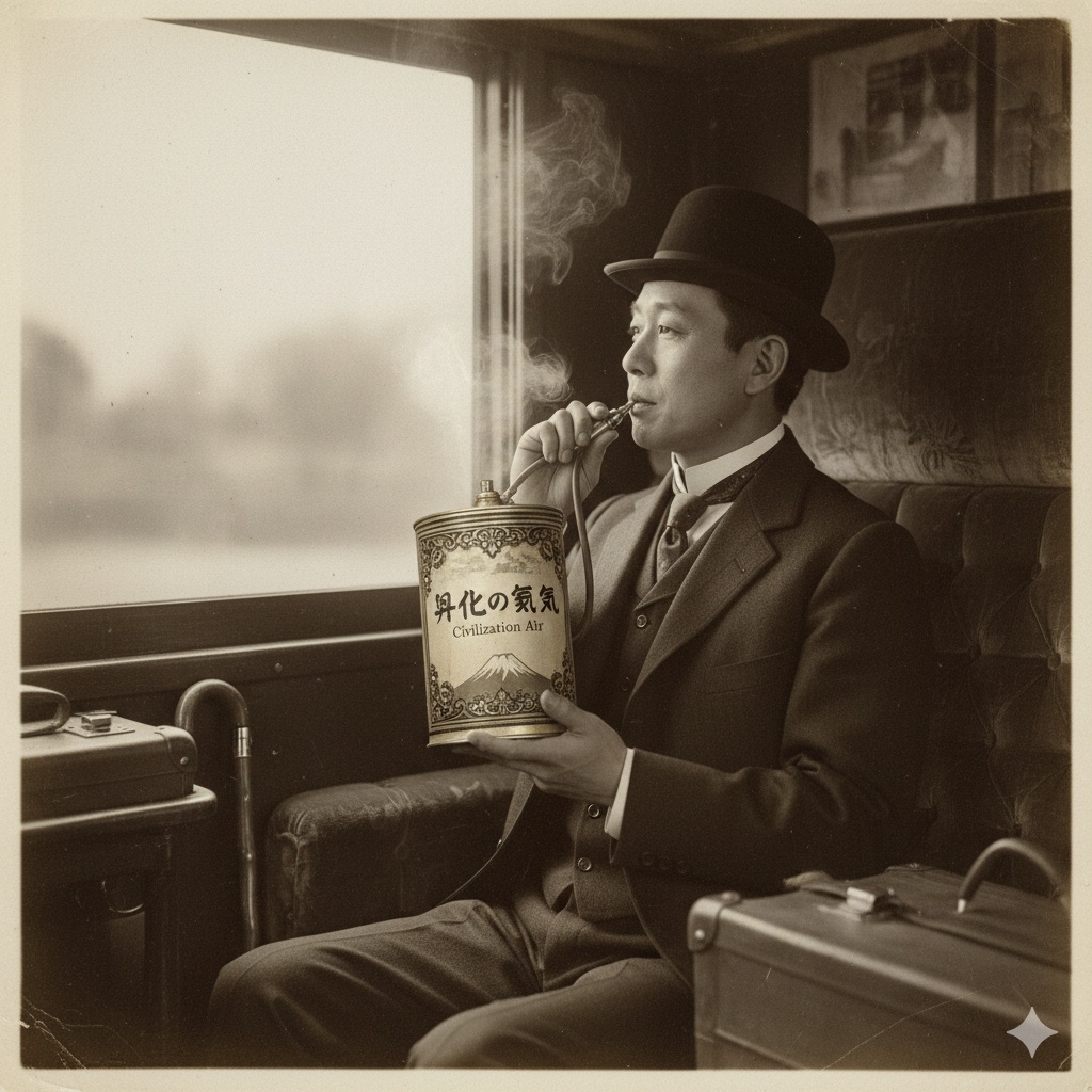 この恐るべき事態を防ぐため、日本国内の「開化の象徴」である富士山麓で特別に採取した純粋な「開化の空気」を缶詰にし、渡航者一人あたり3缶携行することを義務付けました。缶詰は、気分が優れなくなった際に、静かに蓋を開けて深呼吸することで和の精神を保つ「精神の酸素ボンベ」としての役割を担いました。