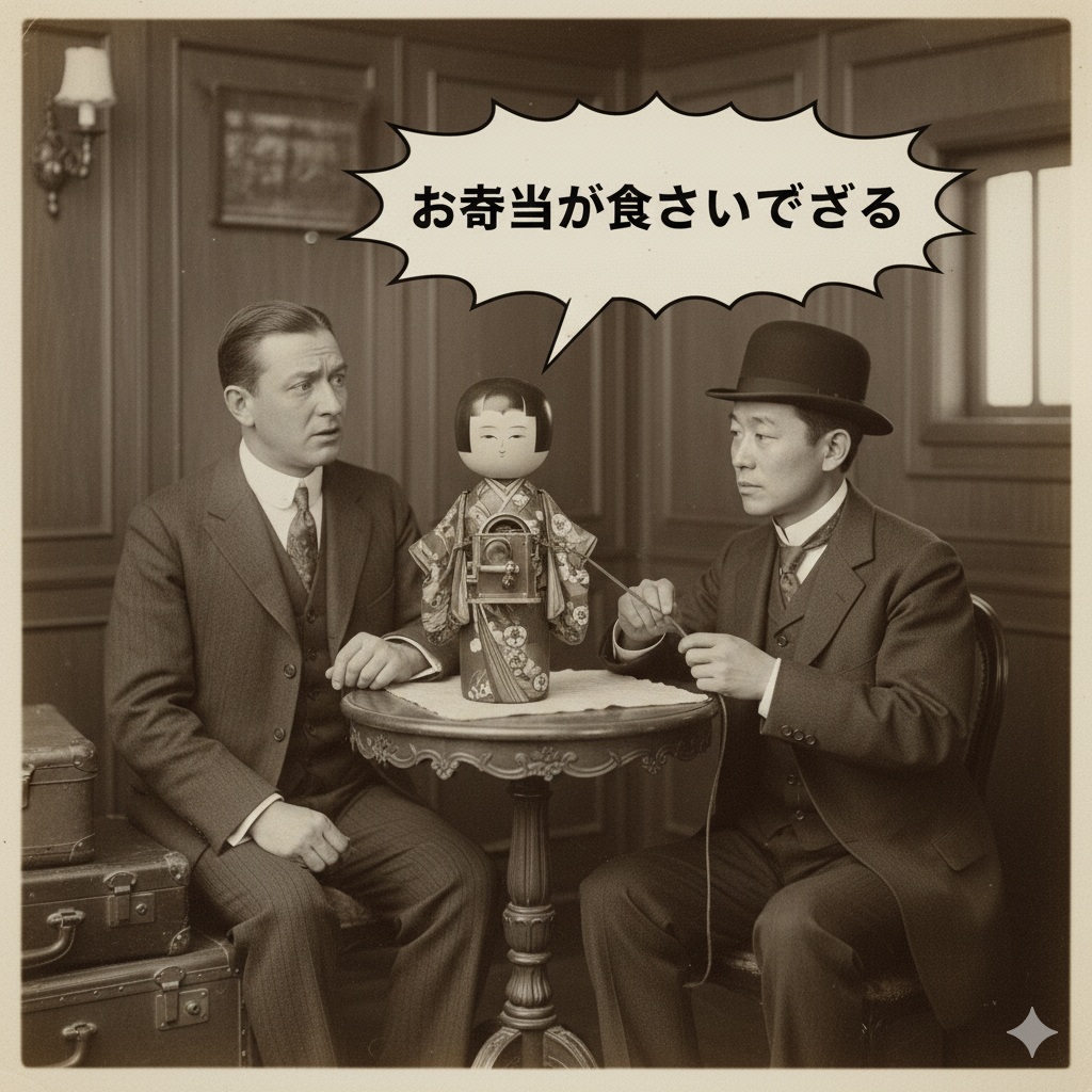 しかし、蓄音機の蝋管は湿気に極めて弱く、航海中の高湿度の影響で一週間を待たずに劣化。大半の人形が、録音された現地の会話を再生できなくなり、最後に残った音声、「お寿司が食べたいでござる」というフレーズだけを延々と繰り返すというトラブルが頻発しました。結局、この人形は通訳としてではなく、旅先での不安を紛らわせる「ただの寂しがり屋の縁起物」として扱われるに留まりました。