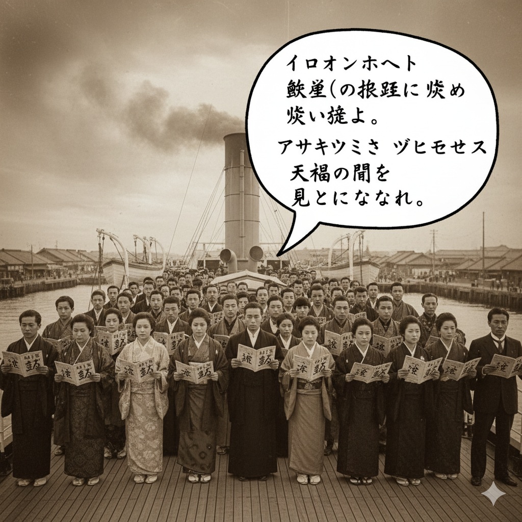 現代の旅行保険やトラベラーズチェックの代わりとして、当時は必ず旅のしおりの裏表紙に大きく記載されていたのが、外務省公認の「旅行安全の呪文」でした。渡航者全員が、船が港を出る瞬間にこの呪文を唱和する儀式が義務付けられていました。