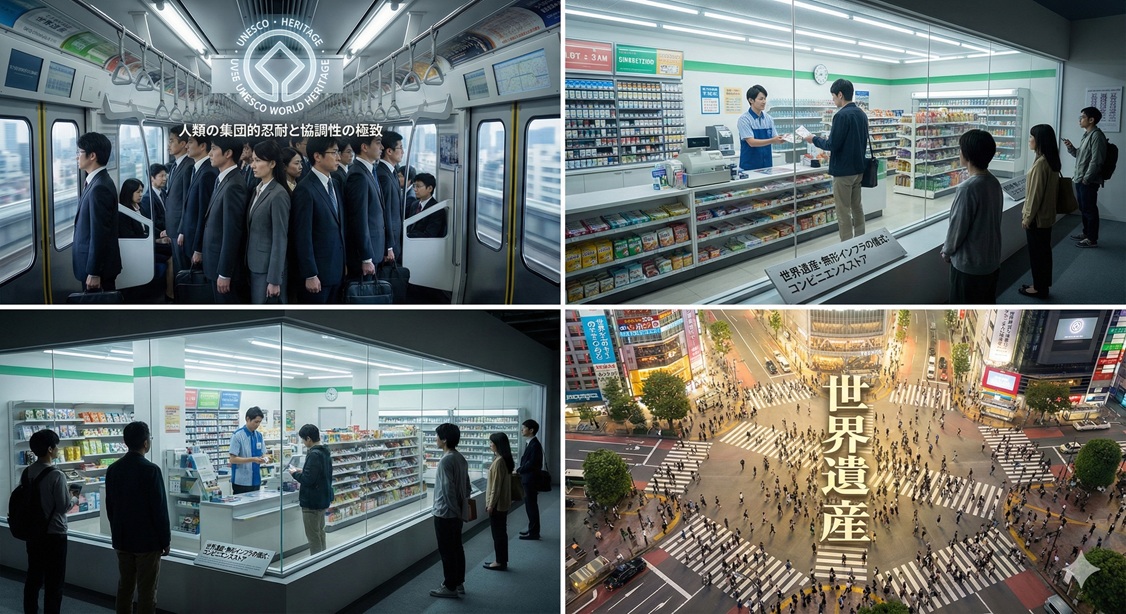 ユネスコの審査団が最も注目したのが、朝夕のラッシュアワーを形成する「満員電車」の運行システムと、そこに乗り込む人々の行動様式だった。審査報告書では、「数百万人が極限の物理的制約下で、いかなる暴動も起こさず、完璧な時間厳守を維持する。これは人類の集団的忍耐と協調性の極致であり、まさに生きている無形遺産である」と絶賛されている。「押されても動じないサラリーマンの微動だにしない立ち姿勢」は、日本の武道における「不動の構え」に通じるとして、実演が求められたという。