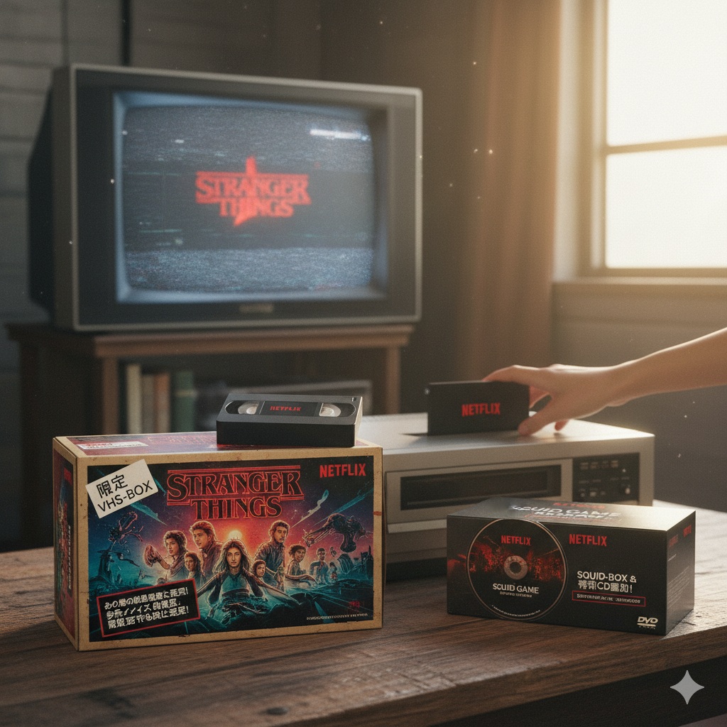 【シリコンバレー発】定額動画配信サービス大手Netflixが、新たな事業戦略として物理メディア事業への参入を電撃発表しました。かねてよりユーザーから寄せられていた「お気に入りの作品は手元に置いておきたい」「インターネット環境に左右されず視聴したい」という熱い要望に応える形で、自社オリジナル作品のDVD-BOXおよびVHS-BOXの限定販売を開始します。