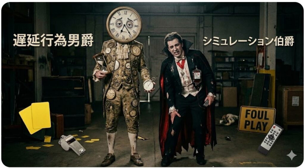 - 遅延行為男爵: 時間を稼ぐことだけに特化し、戦いを放送時間ギリギリまで引き伸ばす。