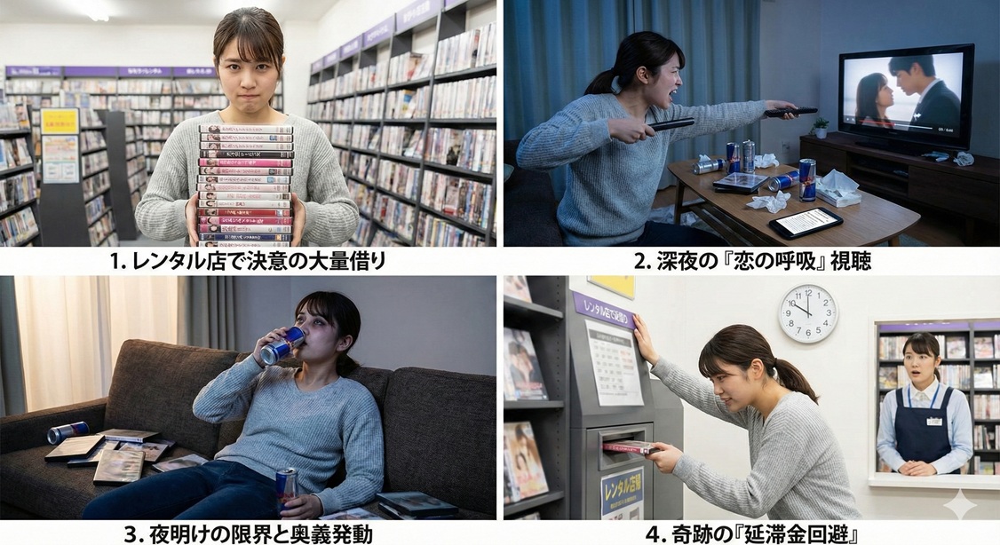 特に近隣住民を驚かせたのは、物語の中盤、主人公カップルにすれ違いが発生した際の対応だ。夢見さんは「肆ノ型!『相関図確認(ウィキペディア・チェック)』!」と叫びながら、スマホでネタバレを確認して精神を安定させるという高度な技を披露。さらに夜明け前、睡魔が襲ってきた際には「奥義!『カフェイン過剰摂取(エナジードリンク・ガブノミ)』!」を発動し、意識を強制的に覚醒させ続けた。