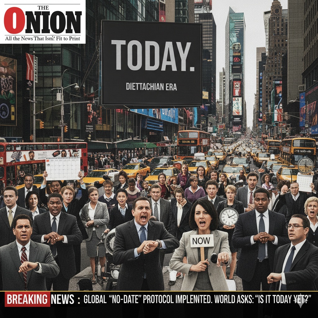 【ワシントンD.C.発】米国の思想家チャールズ・ディートタッヒ氏の提唱した「今日という日は残りの人生の最初の日である」という有名なフレーズに基づき、同氏が設立したディートタッヒ財団は本日、衝撃的な発表を行った。世界中の公的・私的なカレンダーと日付の概念を、本日付で全面的に「廃止」するというものだ。