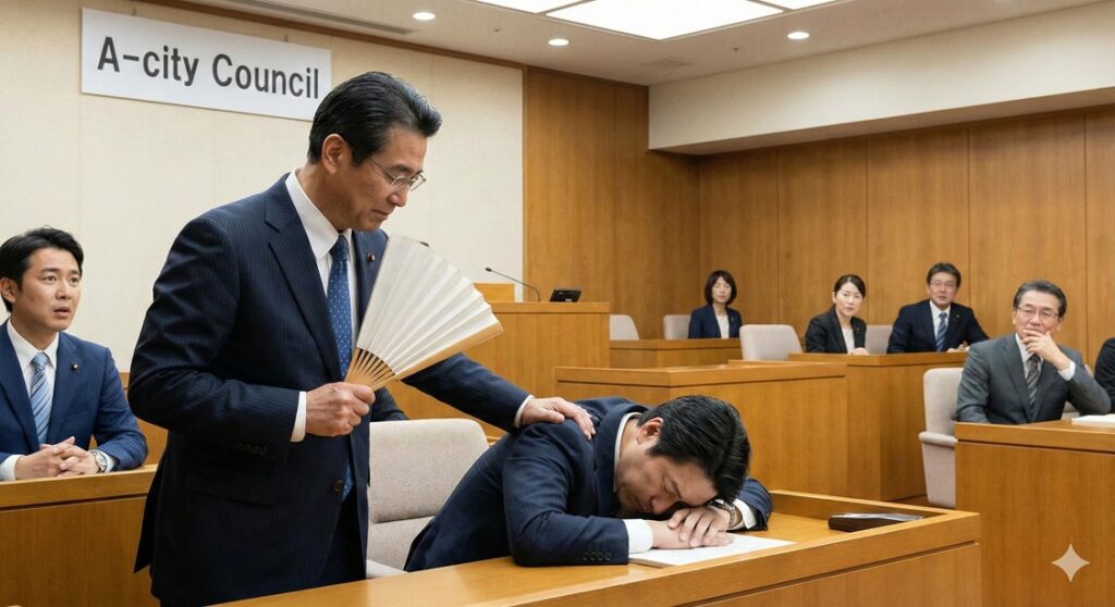 😴 居眠り議員対策が迷走!隣り合う市で真逆の対応が話題に