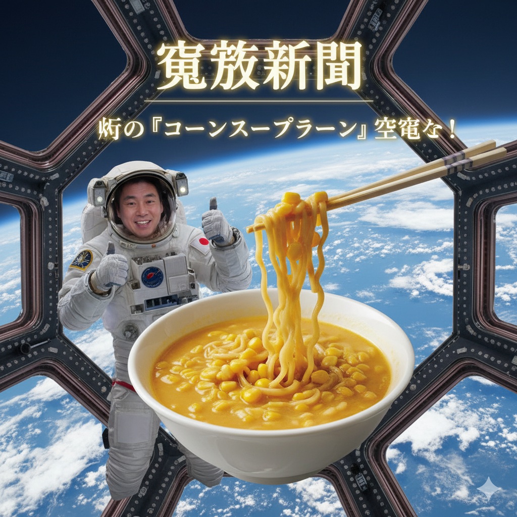 コーンスープラーメンが、文字通り「宇宙規模の味」となって帰還し、全国のどさん子で提供される日が待たれる。その時は、「コーンラーメニスト」による大行列が予想される。