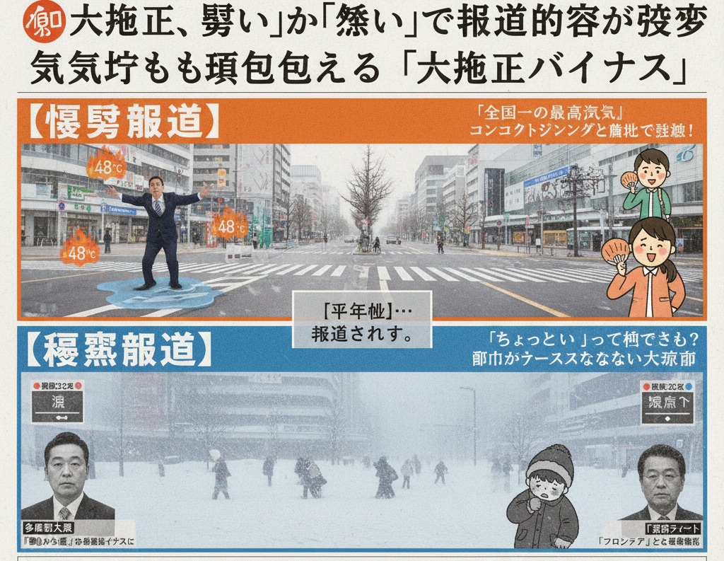 【八王子発】気象庁は2025年10月25日、東京都八王子市における報道内容の極端な二極化現象について、正式に「八王子バイアス」と命名し、報道機関に対し注意喚起を行いました。これは、八王子が「暑いか寒いかのどちらか極端な存在としてしか報道されない」という、長年の「あるある」を裏付けるものです。