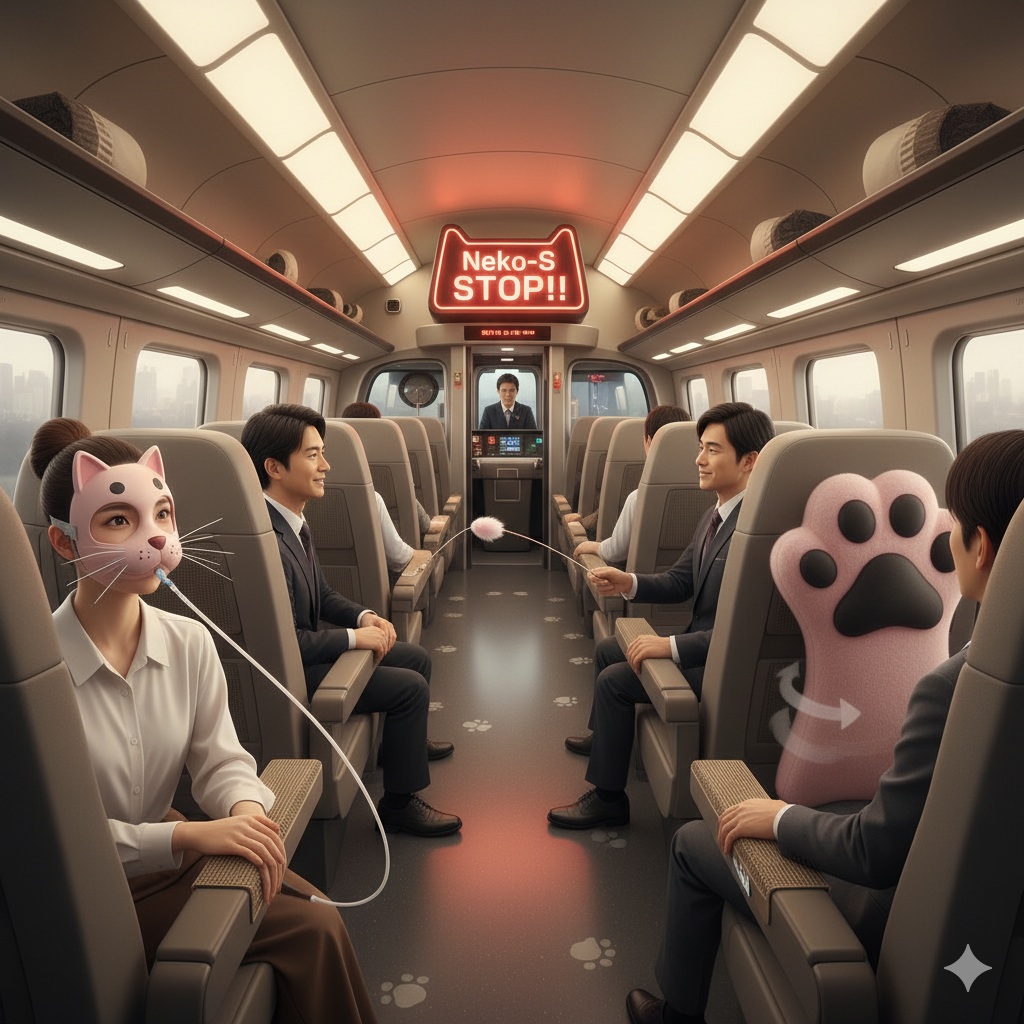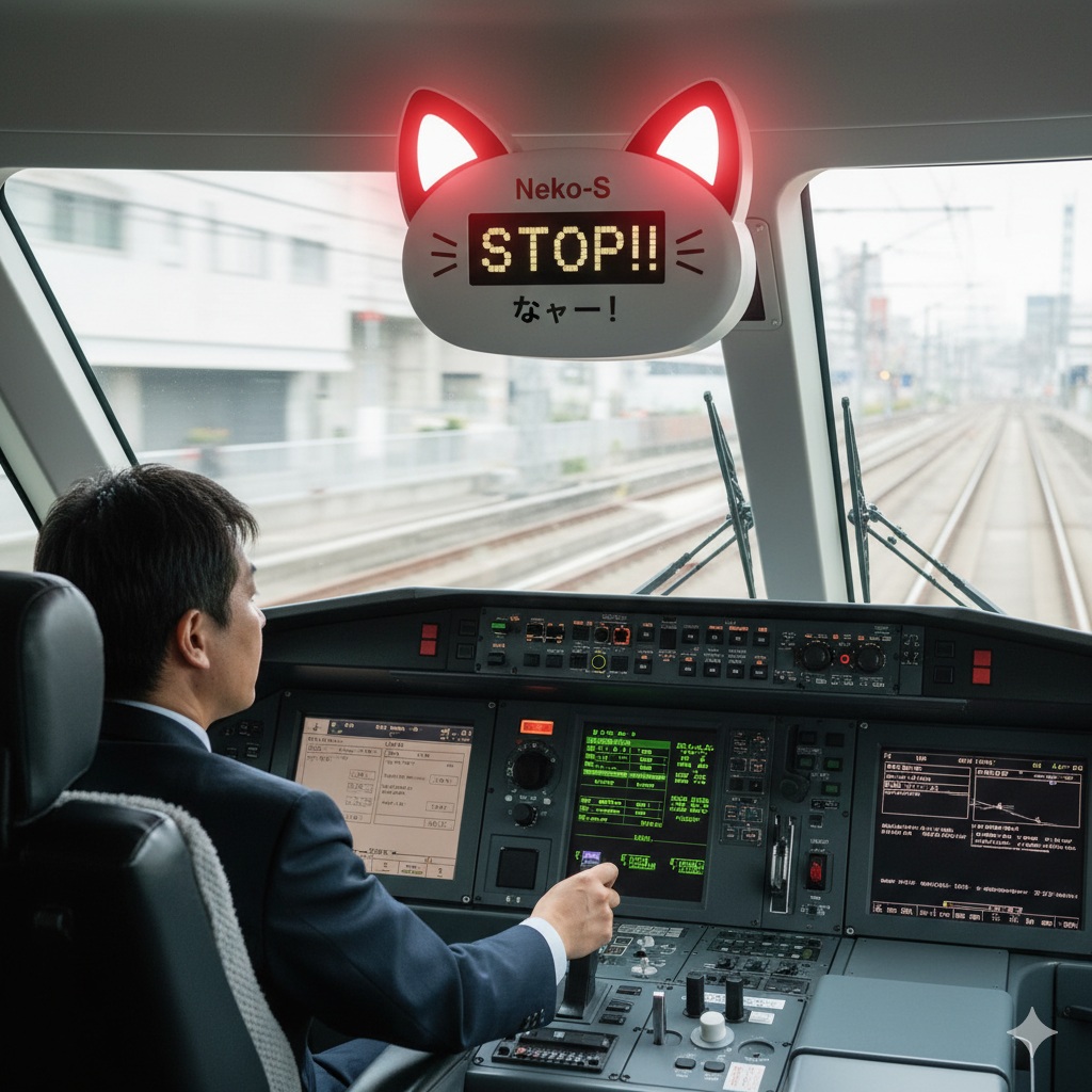 「従来の警告音は乗客に不安を与えることがあった。しかし、この『にゃんこストップ』は、その愛らしさで乗客の緊張を和らげる効果が実証された。また、運転士からも『以前よりリラックスして運転できる』と好評だ」と、JR東海の広報担当者である犬飼 忠(いぬかい ただし)氏は自信をのぞかせた。