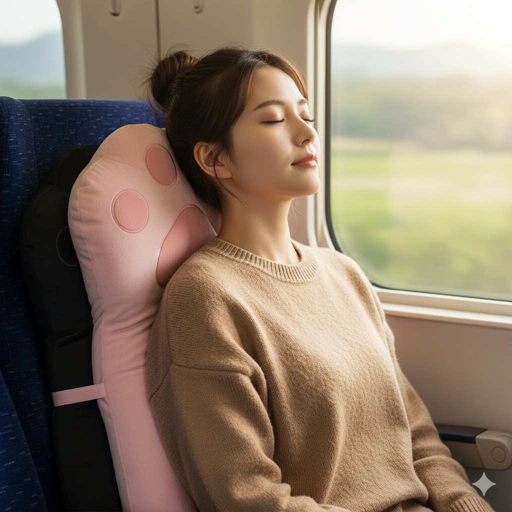 座席の背もたれには、ネコの肉球を模した形状の自動マッサージクッションが内蔵される。急停車で体が強張った際に、この肉球クッションが自動で膨張・収縮し、優しく乗客の背中をマッサージする。色はピンクと黒の2色から選べる。