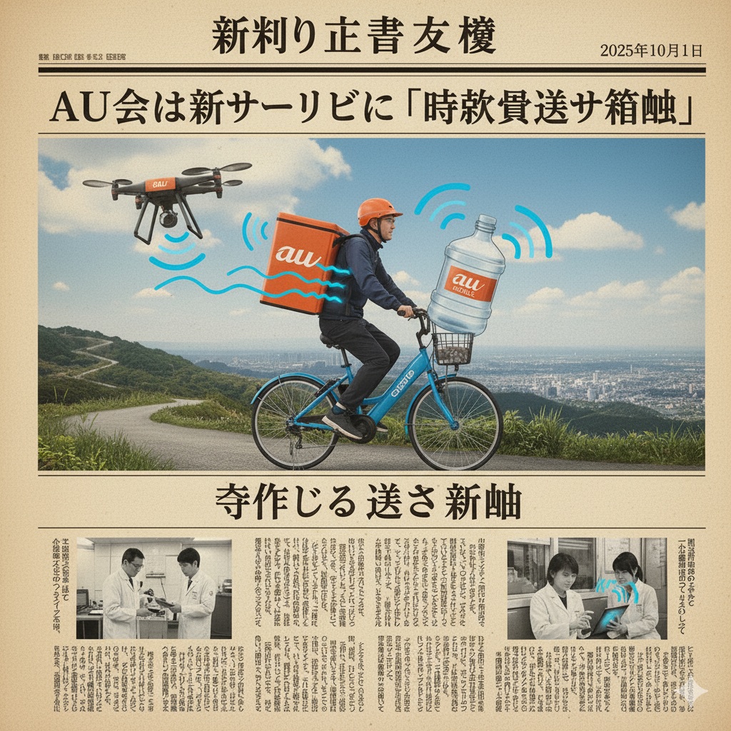 auが、携帯電話の電波が届きにくい山間部や地下にも通信環境を提供する画期的な新サービス「電波配達便」を2026年1月1日より開始すると発表した。 専門の配達員が、電波を特殊な容器に詰めて顧客の元まで直接届け、その場で電波を放出することで安定した通信を確保するという。