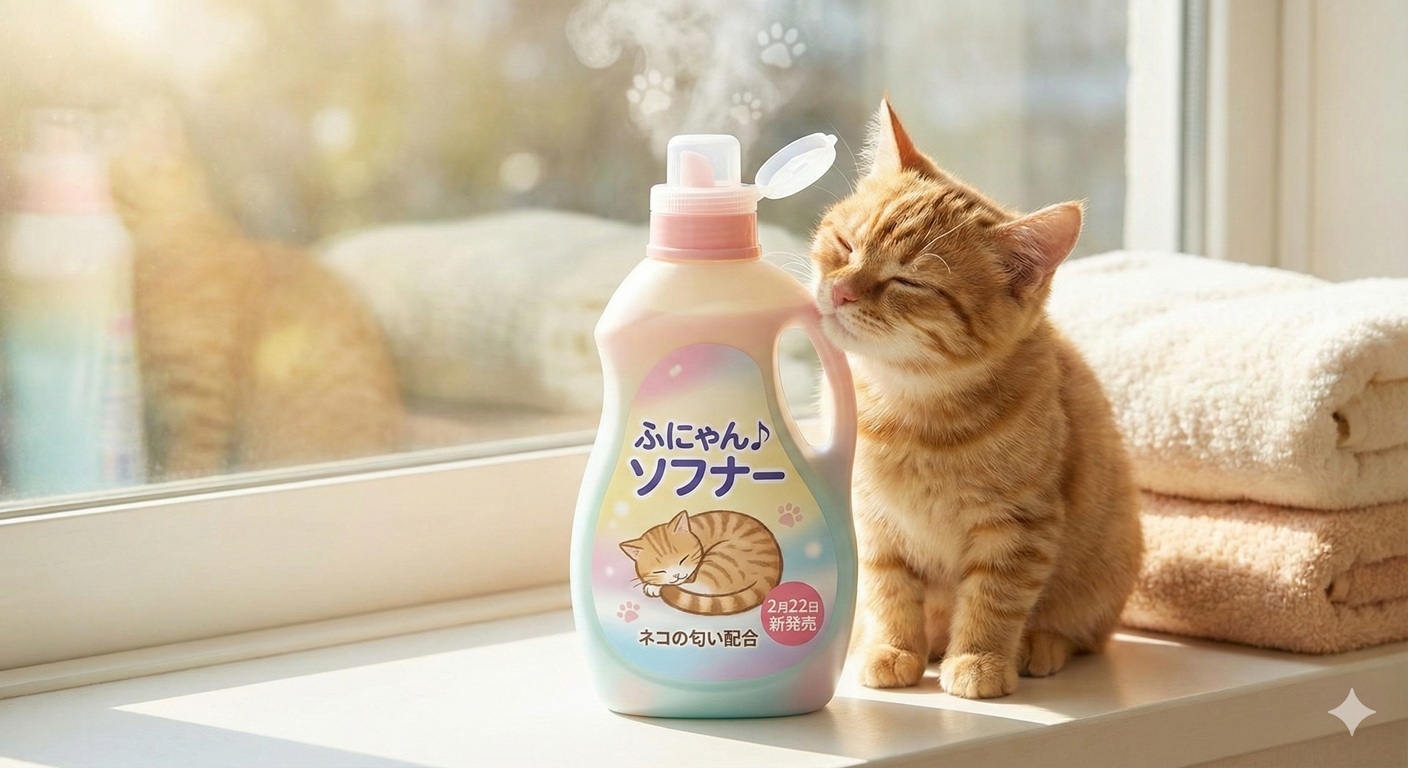 【東京】 香り製品を開発・販売する大手メーカー、にゃにゃ・コーポレーション(本社:東京都ネコ田区)は、このたび、ネコ好きのユーザー層をターゲットにした革新的な柔軟剤「ふにゃん♪ソフナー」を、来る2月22日(ネコの日)より全国で一斉発売すると発表しました。