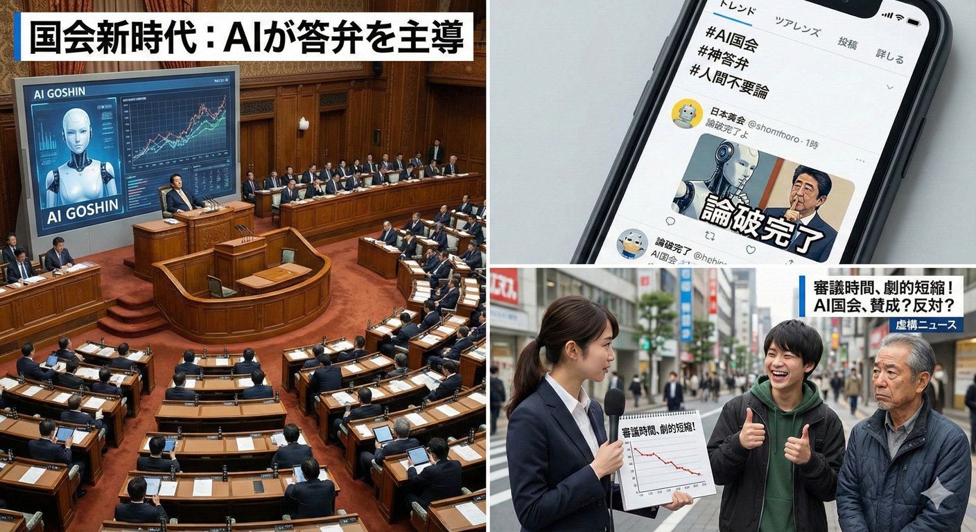 🚀 ネットで「AI国会」が評判に:「神答弁」で審議スピード3倍へ