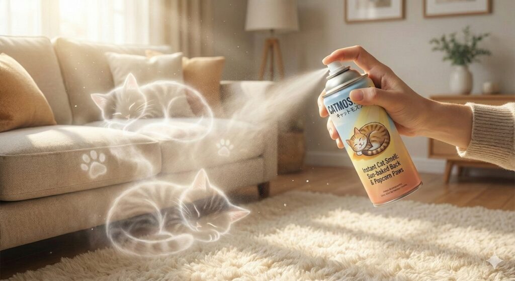 通常、消臭スプレーといえば、タバコや汗、ペットの排泄臭などを「無臭化」または「良い香り」に変えるものが一般的だ。しかし同社が開発した「キャットモスフィア」は、それらの悪臭を強力に分解した直後、特殊配合されたナノ粒子が「日向ぼっこをした直後の猫の背中」や「香ばしい肉球(ポップコーン臭)」の香りを空間に定着させる。