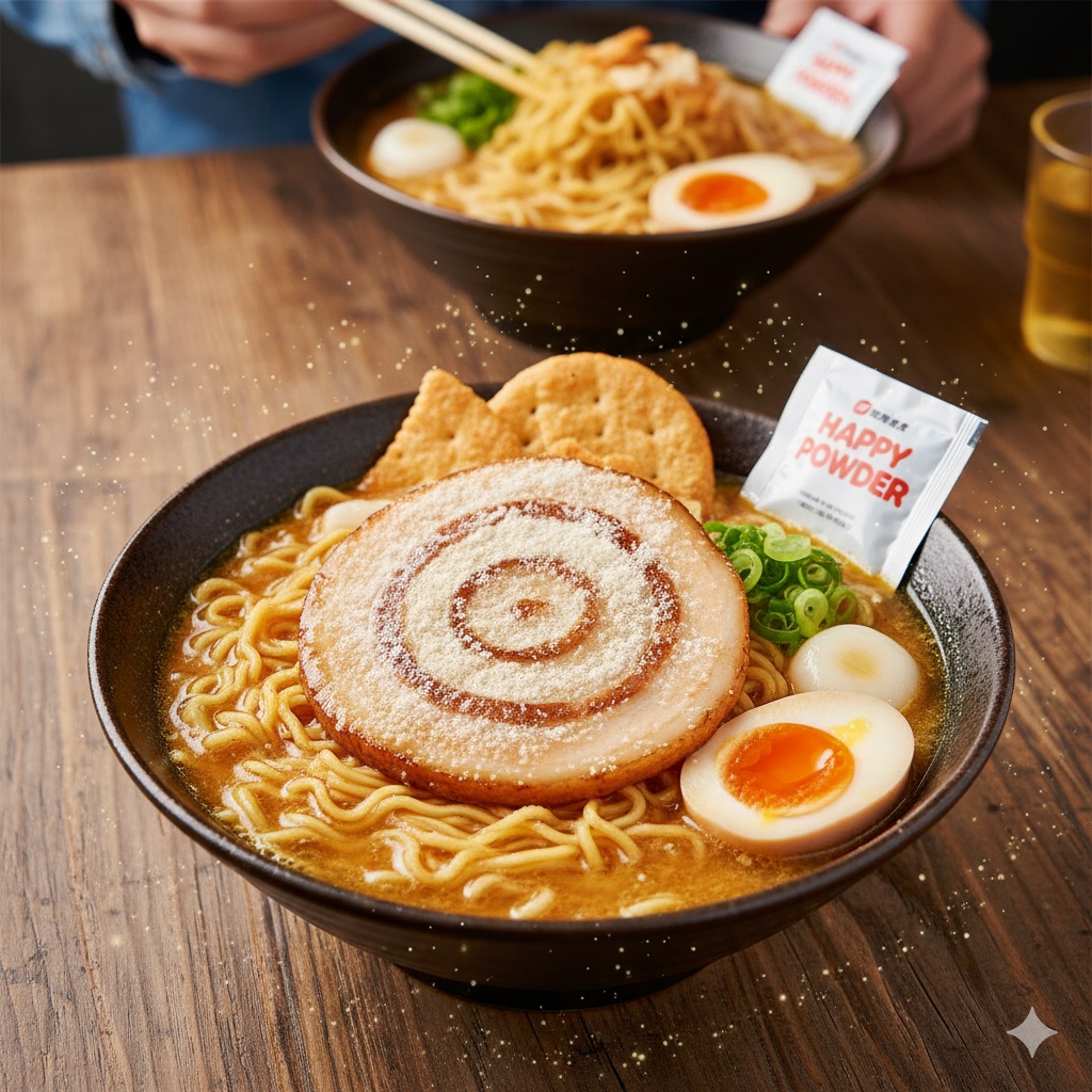 🚨 開発の秘密:麺に練り込まれた「ハッピーパウダー」